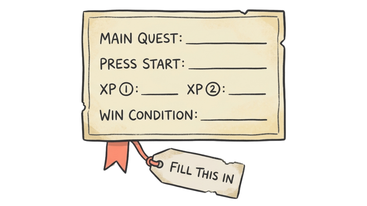 Minute 1 — Write the Main Quest line: "In one session, I will ___." (For a newsletter builder: "In one session, I will publish my first newsletter.")