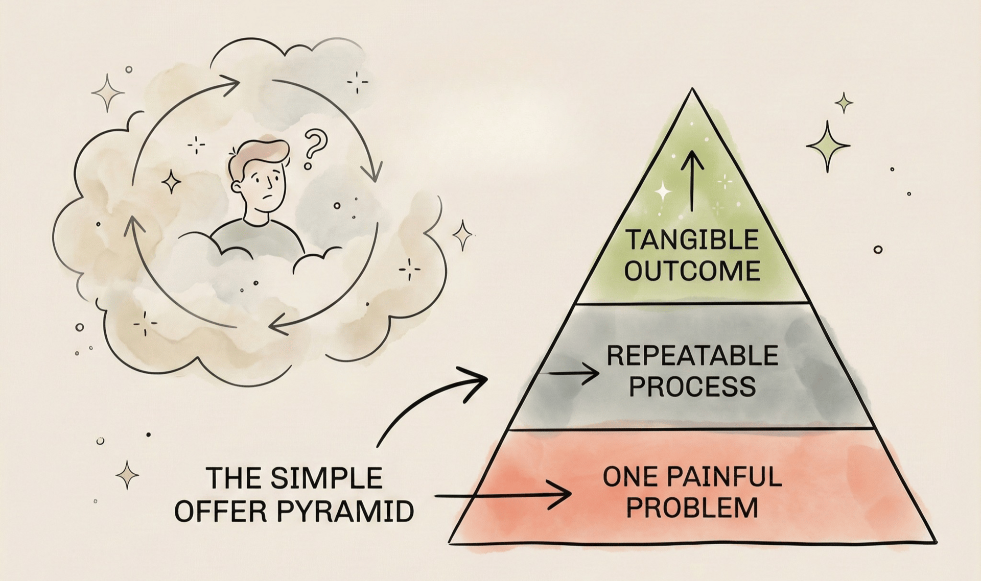 Do this: Look at your current offer (or the idea you've been sitting on). Write down one sentence for each level of the pyramid. If you can't, your offer isn't clear enough.